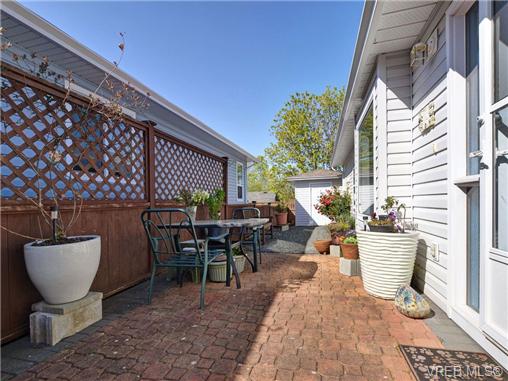 This well cared for manufactured double wide home located in the Songhees Retirement Park is move in ready. This beautiful 2 bedroom 2 bathroom home on an easy care lot features a master bedroom with full ensuite, double car garage, shed, gas fireplace, forced air heat, spacious kitchen and separate living room with vaulted ceiling and dining room. This 55+ community with clubhouse is close to all amenities for your convenience and minutes from downtown.
