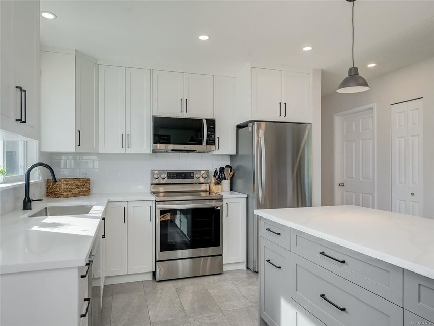 Enjoy this beautiful home located in a quiet family friendly neighbourhood. This home has been thoughtfully updated including the kitchen with quartz counter tops, island and SS appliances. The main floor offers open concept living and dining area, a wood burning fireplace, 3 bedrooms and full bath. You will love the south facing rear deck overlooking the fully fenced yard which is great for kids and pets. The lower floor includes a one bedroom ground level suite with its own entrance and access to the shared laundry room. There is a full single car garage and plenty of additional parking for any extras you may have. Other updates include: heat pump, hot water tank, exterior and interior paint and irrigation system. This home is close to Saanichton Village for all your shopping needs, Centennial Park and walking trails. Don’t miss this opportunity to call this place home and book your private showing today.