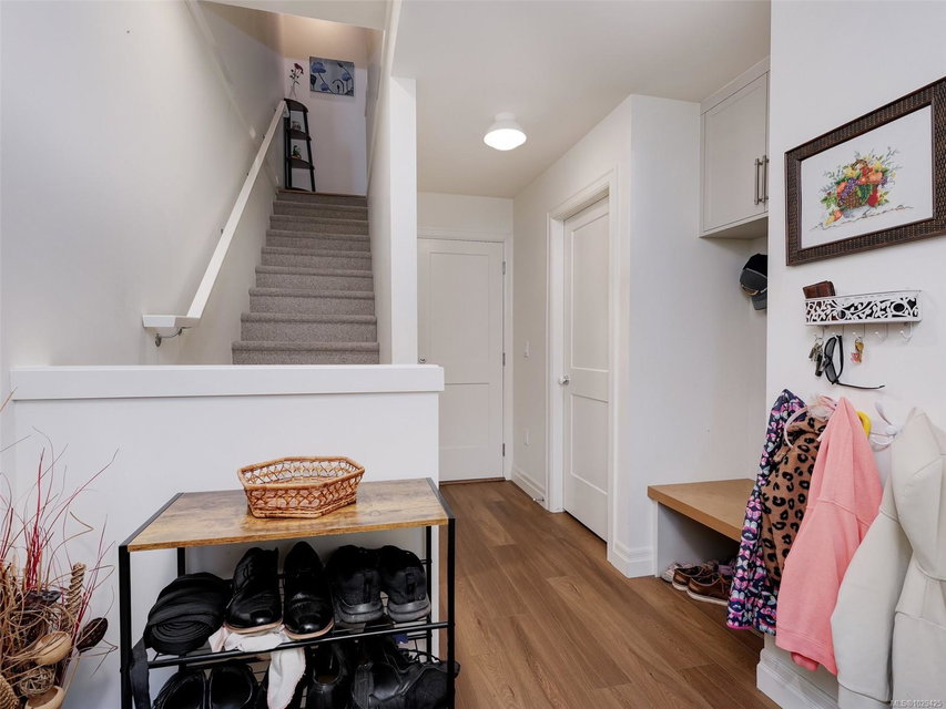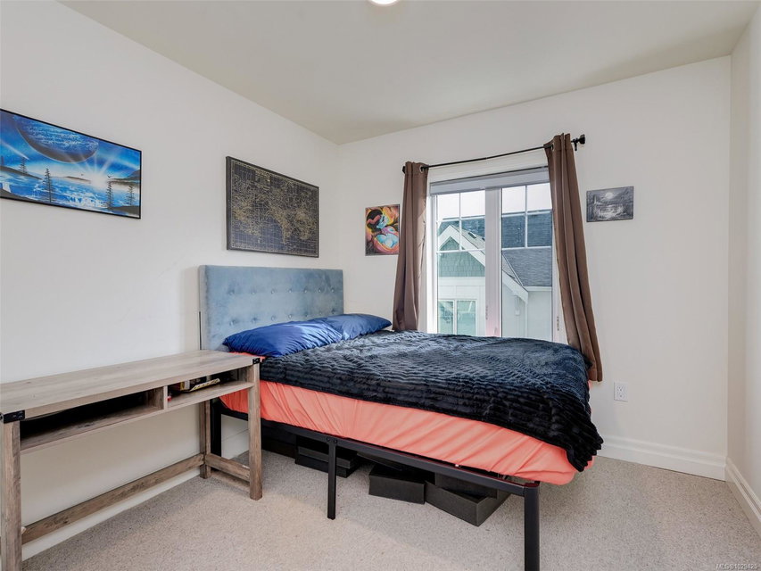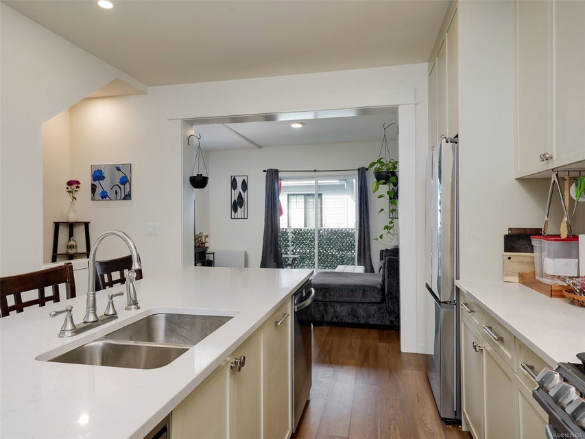 ** Open House Sunday April 12th 11am to 1pm** Welcome to this bright 4 bedroom, 2.5 bathrooms townhouse that has one of the best family floor plans in the development. The open-concept main floor is designed for entertaining, featuring living and dining areas and a beautiful kitchen with full height cabinetry, quartz countertops and premium appliances with gas range. The upper level comprises three nicely appointed bedrooms with full size washer & dryer. The primary suite offers a walk-in closet and a luxurious ensuite with a glass shower & heated floors. The lower floor features the fourth bedroom which could be a home office or media room. Additionally, there is a storage room for all those extras which is handy to the single car garage with EV charger. This central location has a great feel with its tree lined streets and close proximity to the Selkirk Waterfront, Galloping Goose Trail and all shopping amenities. Don’t miss the opportunity to call this place home and book your private showing.