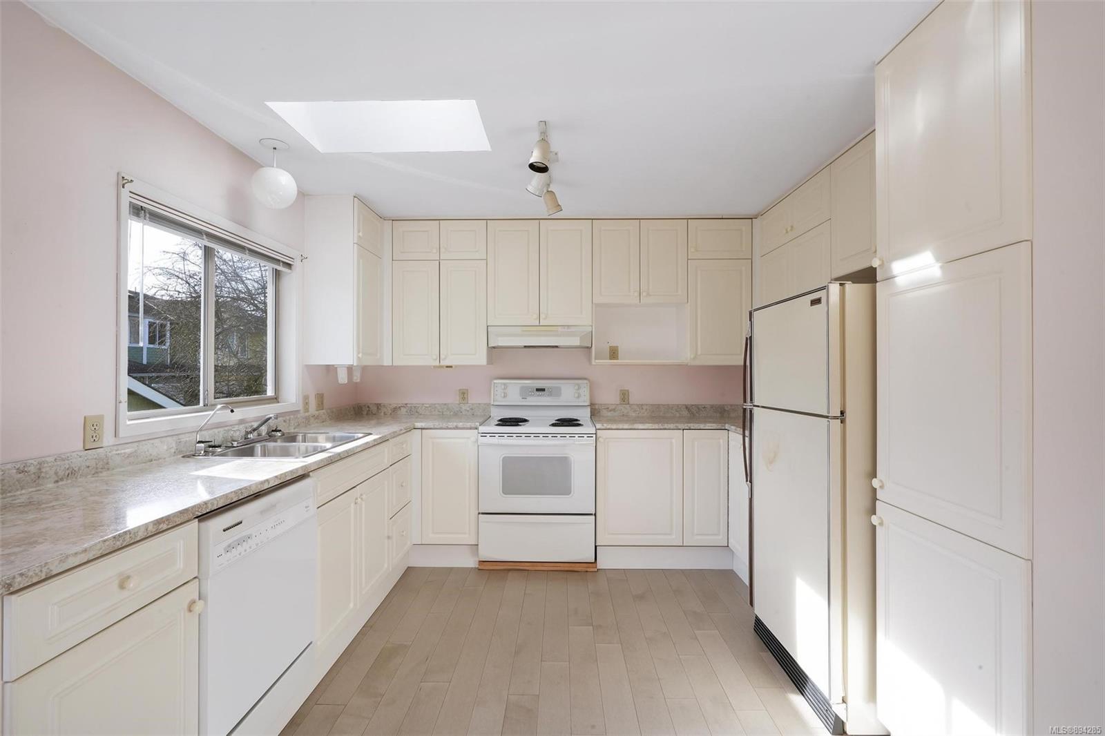 Beautifully situated 3 bedroom 3 bathroom townhome located in a quiet neighborhood and backing onto Lillian Hoffar Park is waiting for your decorating ideas. This 2 level, 1800 sqft spacious home with vaulted ceilings and generous room sizes is perfect for those downsizing or looking for more space. The primary bedroom has a two piece ensuite and access to the newly renovated deck with new sliding glass doors. The bright living room with access to the large deck has high ceilings, skylight and a gas fireplace. The kitchen with skylight opens to a lovely bright dining area and is perfect for entertaining. There is an additional bedroom and 4 piece bathroom on this level. Downstairs you will find a family room and bedroom (no closet) with access to the spacious patio. In addition, there is a den or storage area, a 3 piece bathroom with laundry area and two car garage. This friendly quiet complex will be appreciated along with it’s proximity to transit, airport and ferries.