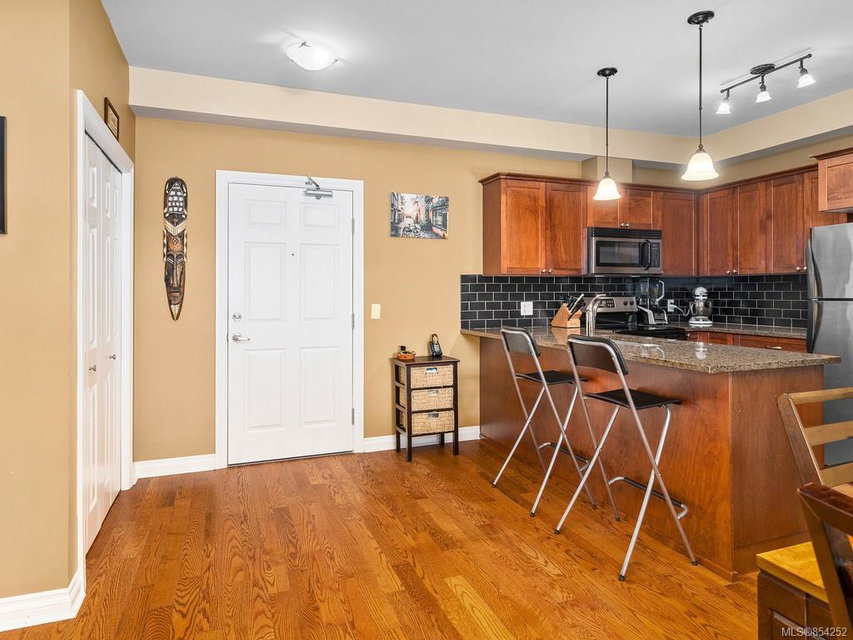 Great opportunity to own a bright and spacious 2 bedroom, 2 bathroom and den condo in a vibrant neighbourhood close to all amenities. In immaculate condition this condo offers an open floor plan, oak hardwood floors, heated tile floors, 9 ft ceilings, rooftop patio, and a kitchen with stainless steel appliances and granite counters. The master bedroom features a walk-in closet and a four piece ensuite bathroom. The suite also includes a large second bedroom, a den, in-suite laundry, and a relaxing balcony. Perfectly located near shopping centres, restaurants, schools and easy access to bus routes. Come and discover this rare chance to own this great home today!