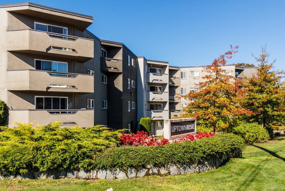 Welcome to Uptown Rise! This building was substantially renovated in 2011 so you get the benefit of the large square footage found in older buildings with the modern finishing of today! This unit is nicely situated on the west (back) side of the building, with a residential outlook.There is an open concept living/dining area with beautiful hardwood flooring & lots of natural light! The kitchen has granite counters & stainless appliances. The 2 bedrooms are both very spacious & away from the living area. Full 4pc bathroom, in-suite laundry, separate storage on same floor & a private balcony. Location is second to none, close to Swan Lake, Thrifty’s, Uptown Shopping Centre, transit, parks & the Galloping Goose Trail for easy biking access to UVic or downtown. Rentals & pets OK (2 pets combined weight of 60lb max). Monthly strata fee INCLUDES HEAT & HOT WATER. One parking spot, bike storage & lots of visitor parking off Quadra St. Perfect for first time home buyers, students or investors!