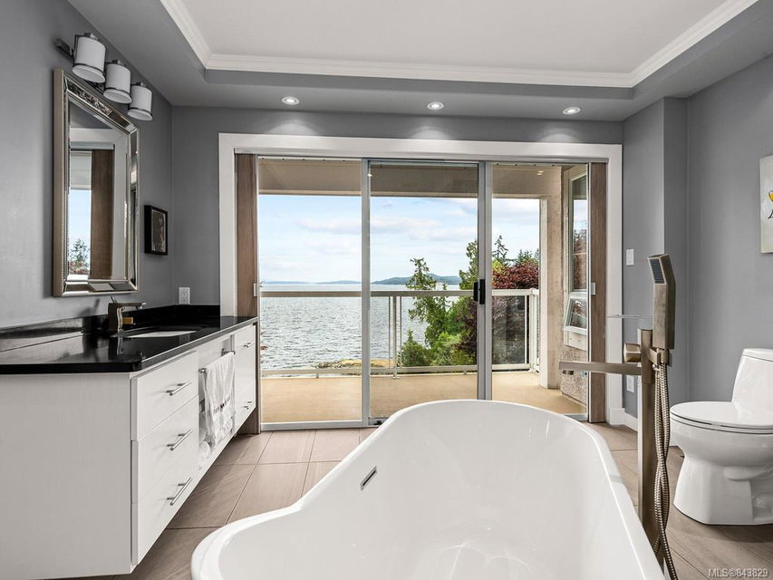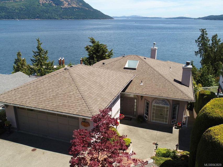 Spectacular ocean views of Mt. Baker and Saltspring Is. are waiting for you from this custom built waterfront home. This 2 bedroom, 3 bathroom home with views from almost every room will leave a lasting impression. Enjoy the open concept living dining room with 10ft ceilings and gas fireplace. The spacious kitchen with eating area is perfect for the chef. Library with built-in book shelves throughout, wet bar, gas fireplace and oak flooring. The marble floor entry leads to a custom staircase down to 2 large bedrooms each with their own ensuite bathrooms with in-floor heating. Sit on your deck and enjoy the sights and sounds of the ocean or enjoy your private sunny front patio. This home has forced air, natural gas heat, built-in vac, storage room, sewing/laundry room, office, elevator roughed-in, two car garage and private boat buoy. Enjoy the prestigious gated lifestyle at Arbutus Ridge with golf course, swimming pool, gym, tennis courts, boat dock and many clubs and activities!