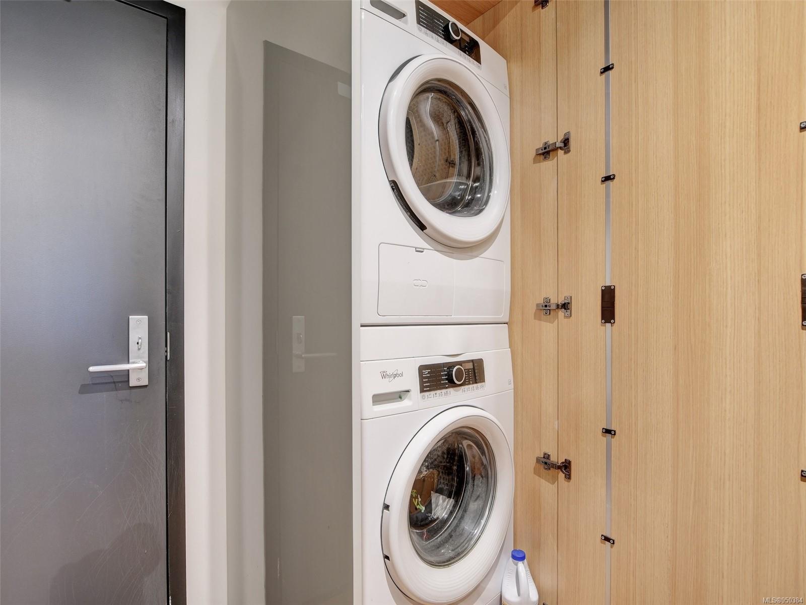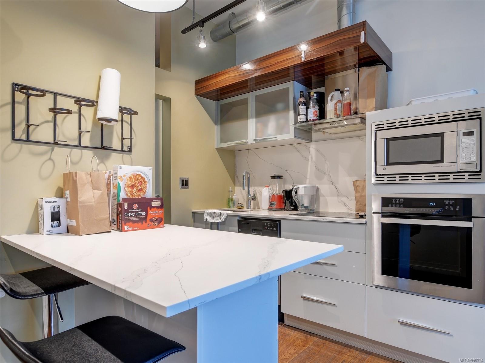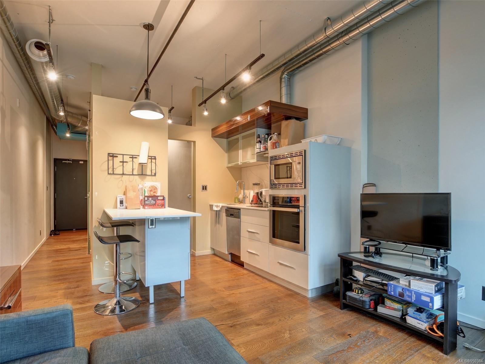 Lowest priced unit in the building that includes PARKING + LARGE BALCONY with nice city views! Walk and bike scores of 98 + transit score of 90 make the convenience of this location hard to beat. Pet, BBQ and Rental friendly with storage locker. FLEXIBLE POSSESSION. Beautiful one bedroom suite in the award winning contemporary steel and concrete Jukebox building. This condo features 10 ft. ceilings, hardwood floors, quartz countertops, GE stainless appliances, custom soft closing cabinetry, a built in eating bar and INSUITE LAUNDRY. Strata fee includes heat and hot water. The building features a common relaxing meditation garden and one of the best equipped condo fitness facilities in the city. Located in Harris Green neighbourhood, right next to Victoria’s vibrant downtown core and within walking distance to shops, restaurants and all amenities. Don’t miss the opportunity to call this place home and book your private appointment to view.