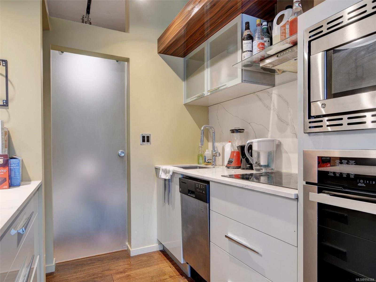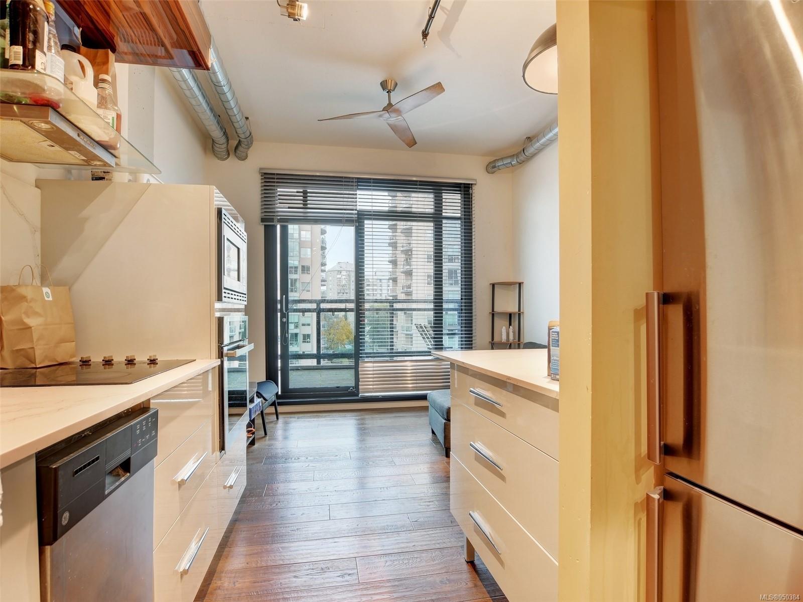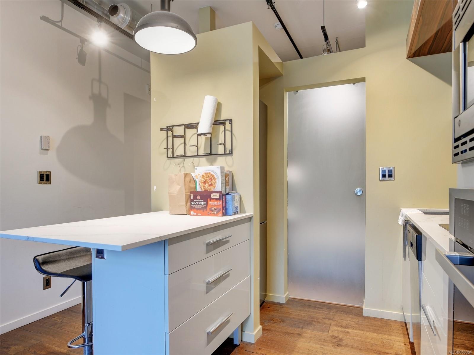 Lowest priced unit in the building that includes PARKING + LARGE BALCONY with nice city views! Walk and bike scores of 98 + transit score of 90 make the convenience of this location hard to beat. Pet, BBQ and Rental friendly with storage locker. FLEXIBLE POSSESSION. Beautiful one bedroom suite in the award winning contemporary steel and concrete Jukebox building. This condo features 10 ft. ceilings, hardwood floors, quartz countertops, GE stainless appliances, custom soft closing cabinetry, a built in eating bar and INSUITE LAUNDRY. Strata fee includes heat and hot water. The building features a common relaxing meditation garden and one of the best equipped condo fitness facilities in the city. Located in Harris Green neighbourhood, right next to Victoria’s vibrant downtown core and within walking distance to shops, restaurants and all amenities. Don’t miss the opportunity to call this place home and book your private appointment to view.